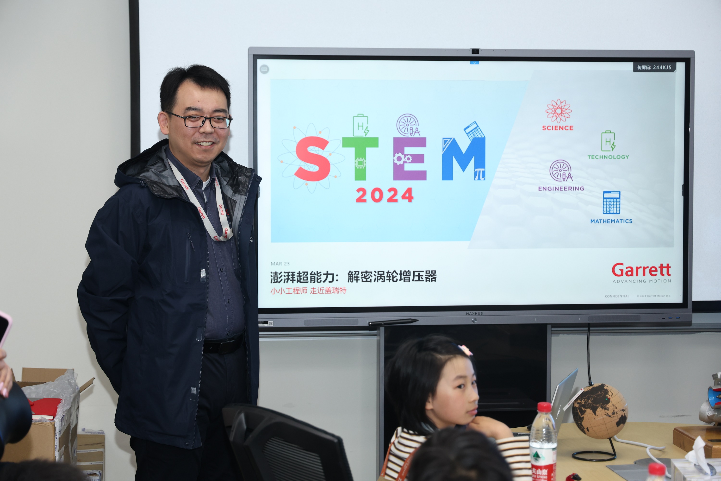盖瑞特中国区工程总监兼创新中心负责人王环先生为“小小科学家”活动日的举办致开幕词。STEM代表科学、技术、工程、数学,是专注于硬科学、培养批判性思维技能并且提高解决问题能力的教育方法,对于STEM的教育关注既能塑造科学素养,也能培育发现、表达和解决科学问题的能力。希望活动中,孩子们能用好奇心和探索精神,开启一场科学之旅!